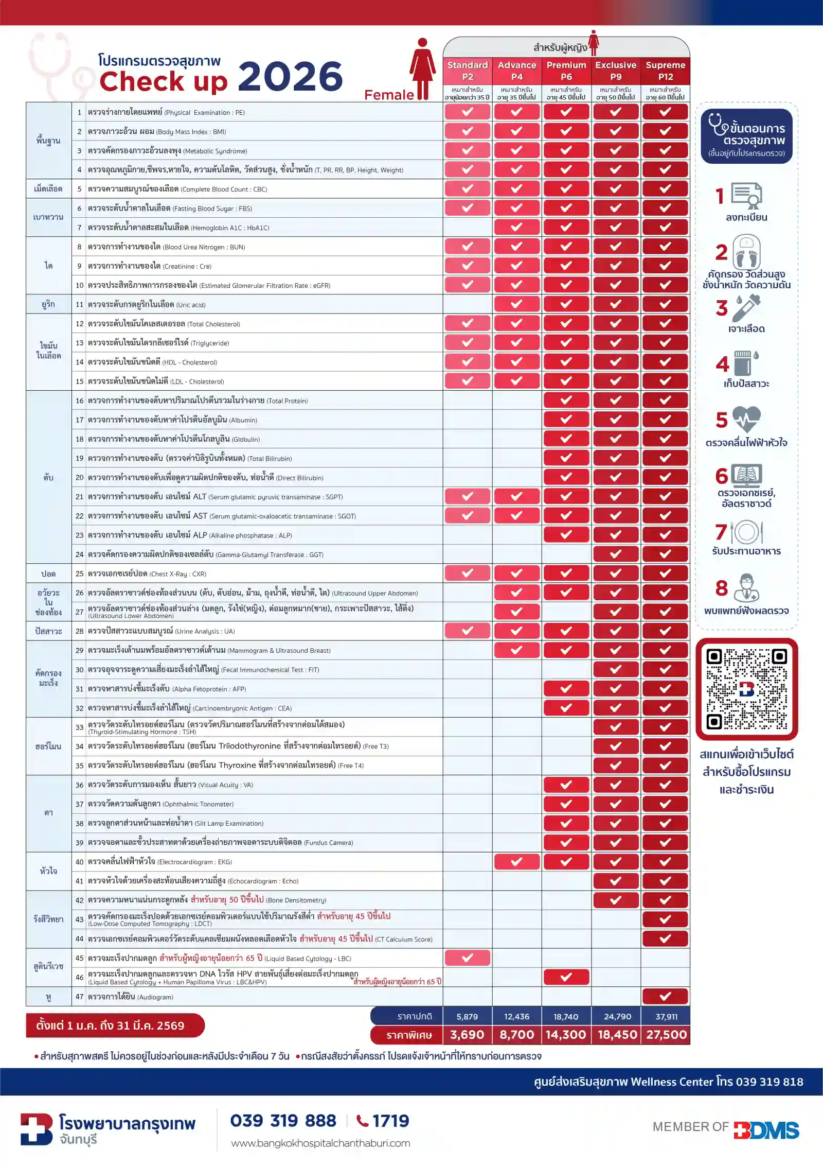 โปรแกรมตรวจสุขภาพ Check up 2026 : Standard Female (P2) เหมาะสำหรับผู้หญิง อายุน้อยกว่า 35 ปี