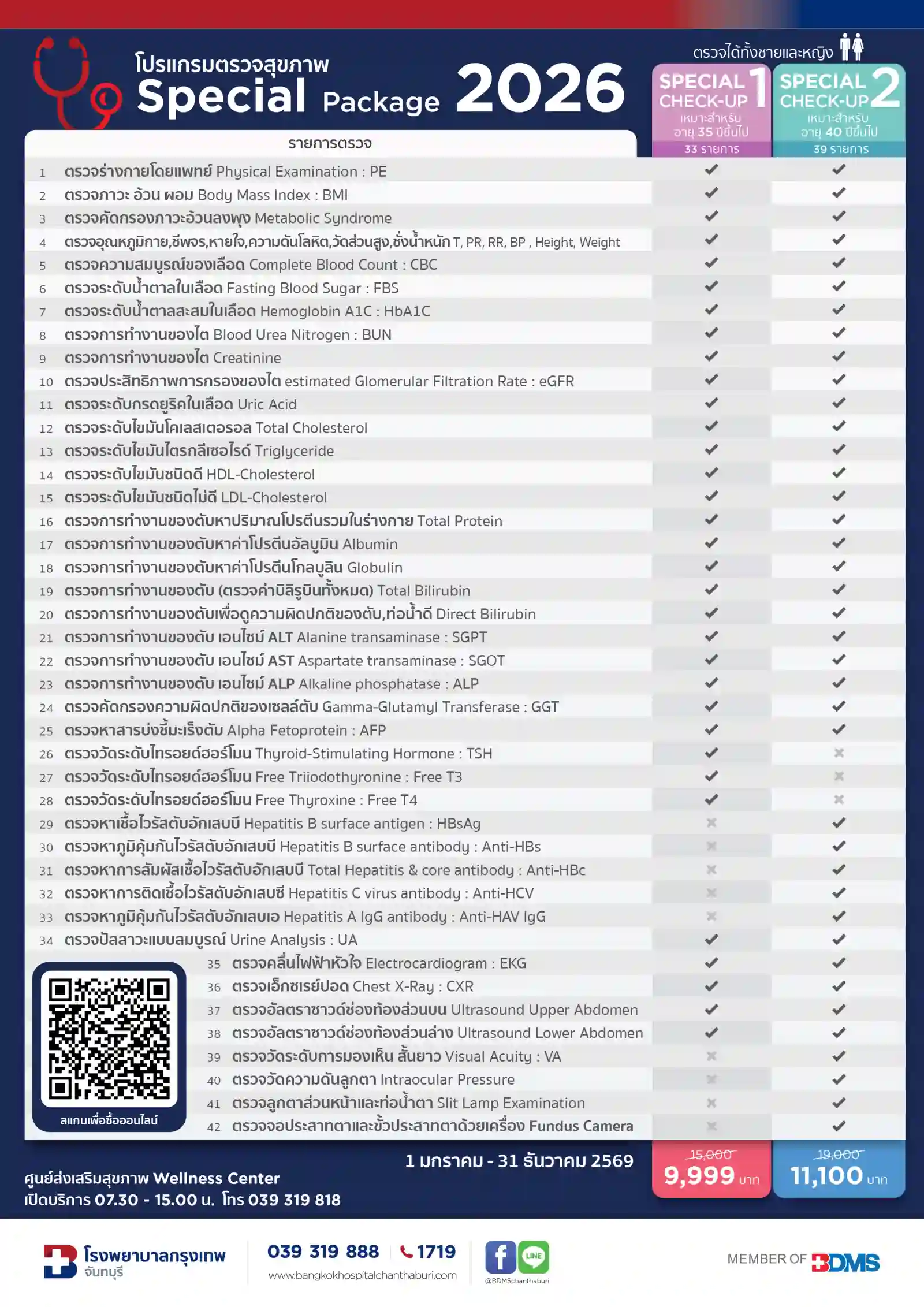 โปรแกรมตรวจสุขภาพ Special Package 1