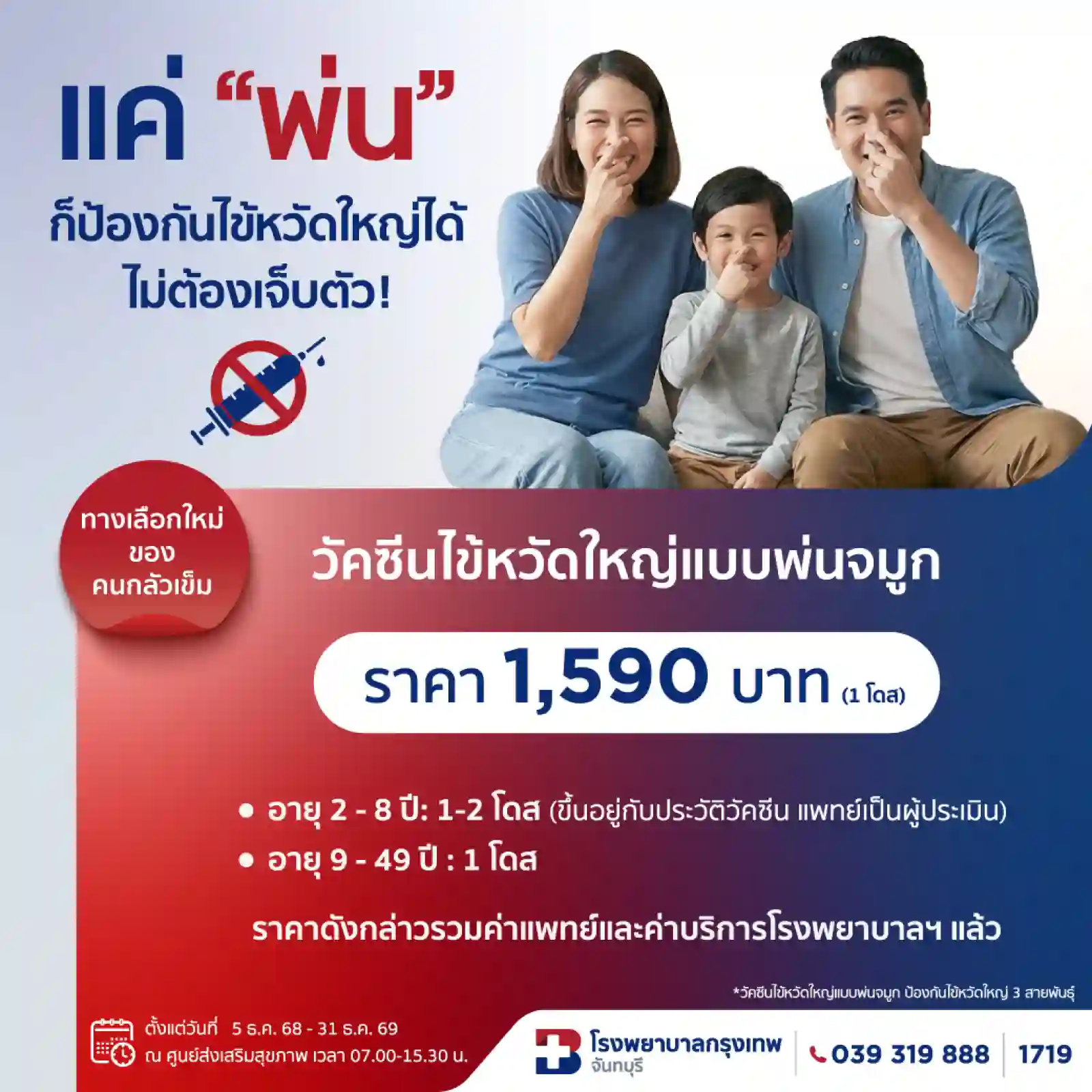 วัคซีนไ้หวัดใหญ่แบบพ่นจมูก ราคา 1,590 บาท